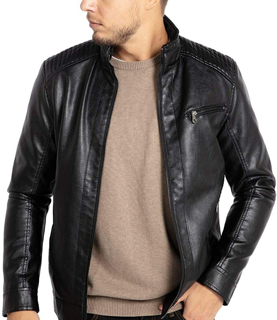 Men’s Biker Quilted Vintage Distressed Motorcycle Cafe Racer Leather Jacket